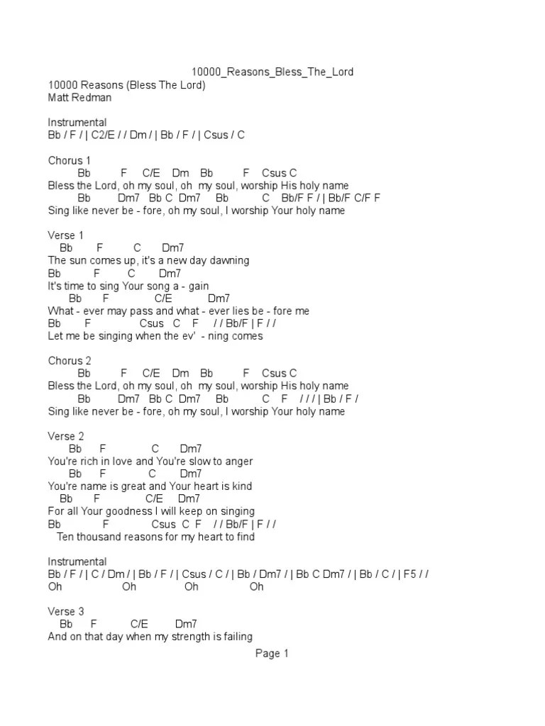 Contact Us: Email: theasidorshome@yahoo.com Cell: +639-68-853-1277 or 09688531277 To start our 2018, here is your . 10000 Reasons Bless The Lord Oh My Soul Lyrics are a subject that is being searched for and favored by netizens these days. You can Save the 10000 Reasons Bless The Lord Oh My Soul Lyrics here. Download all royalty-free pic. 10,000 Reasons - Song By Matt Redman - Ft. Steven Samuel Devassy Lyrics, 10000 Reasons - Song By Matt Redman - Ft. Steven Samuel Devassy Lyrics 10000 Reasons Matt Redman Bless the Lord oh my .